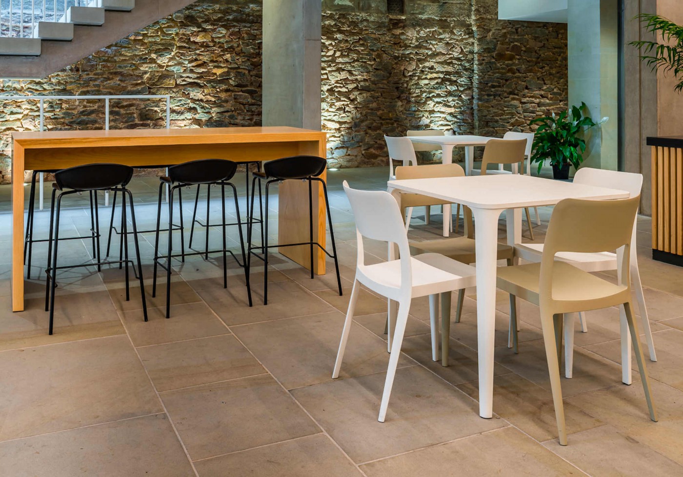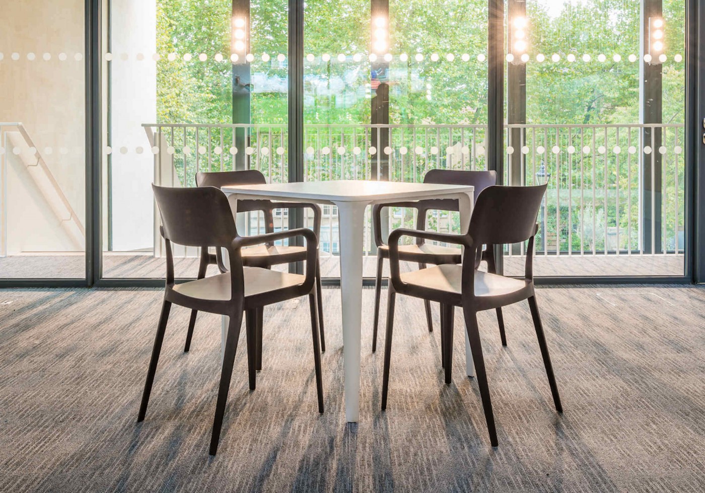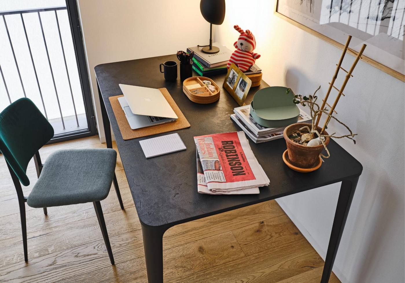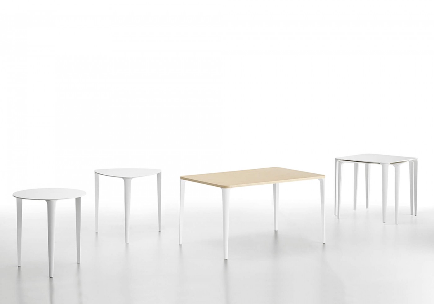 • Rectangulaire : pieds en métal, plateau en mélaminé, HPL, Fenix ou stratifié.