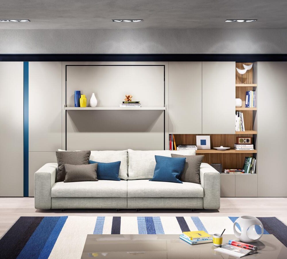 Du salon à la chambre, en un seul geste ! Le système innovant ITO 016 combine canapé coulissant et lit double escamotable prêt à l’usage. Le vrai canapé-lit tout en un!